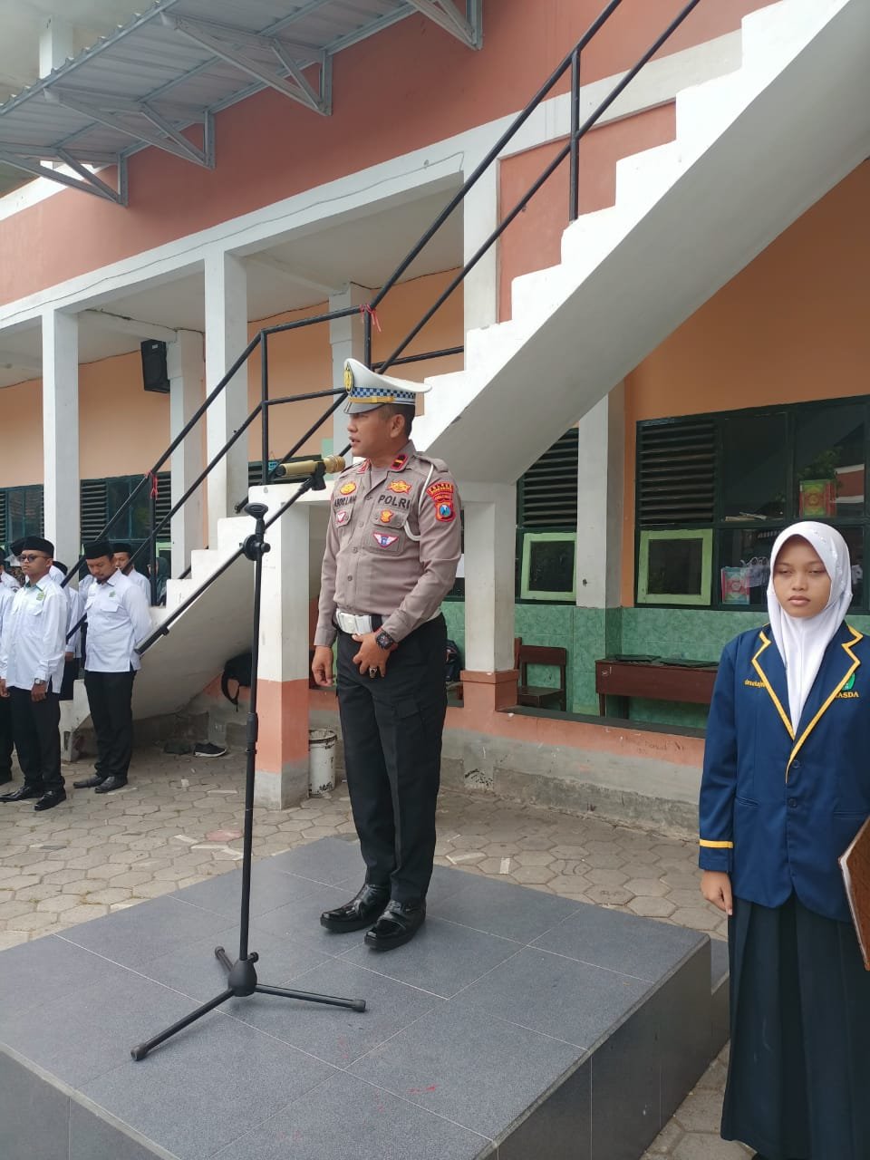 Dalam amanatnya, IPDA Abdillah Muchtar menyampaikan pesan penting kepada seluruh siswa terkait larangan berkendara di bawah umur, sebagaimana yang tertera dalam materi edukatif dari Satlantas Polres. Ia menekankan bahwa mengendarai kendaraan bermotor tanpa SIM dan di bawah usia 17 tahun sangat berbahaya dan melanggar hukum. Hal ini mengacu pada Undang-undang No. 22 Tahun 2009 tentang Lalu Lintas dan Angkutan Jalan, khususnya pasal 77 dan 281.